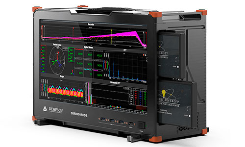 Описание: Портативные системы Dewesoft, такие как SIRIUS® R1DB/R2DB и DEWE-43A, имеют встроенные аккумуляторы, хранилище данных и дисплей, что позволяет проводить измерения без подключения к внешнему компьютеру. Они идеально подходят для инженеров, работающих в полевых условиях, а также для мобильных испытаний.