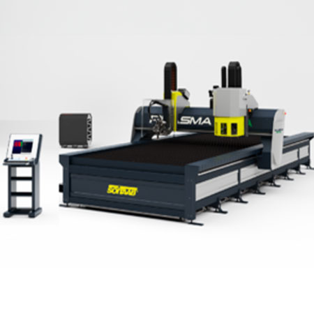 Описание: OMNIAtech — это многофункциональный станок, сочетающий в себе технологии плазменной и кислородной резки, сверления, нарезки резьбы, фрезерования и маркировки. Он оснащен мощным шпинделем (до 30 кВт) с автоматической сменой инструмента и может обрабатывать детали толщиной до 120 мм. Рабочая зона варьируется от 2 до 3,5 метров в ширину и от 6 до 24 метров в длину, что делает его идеальным для крупногабаритных заготовок.